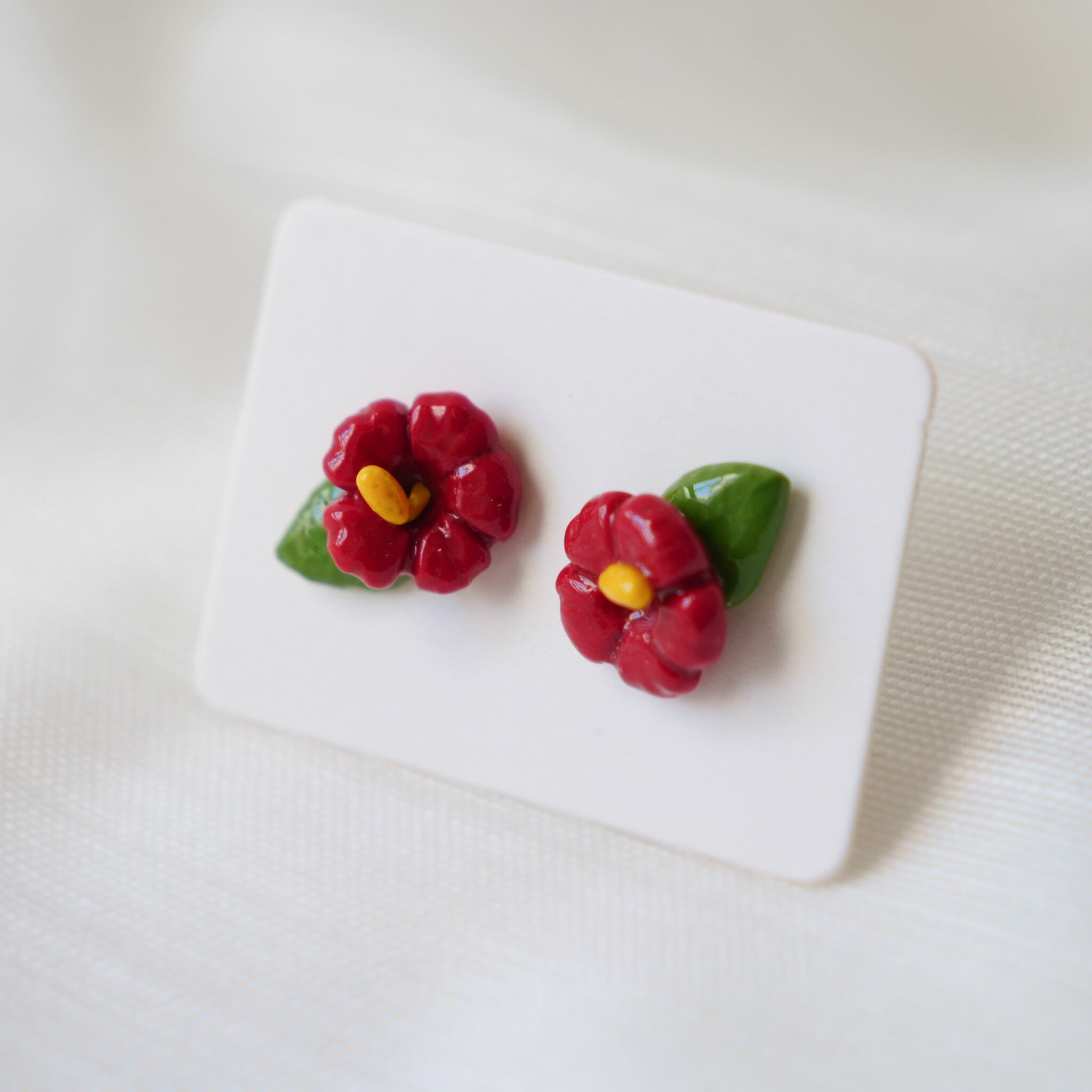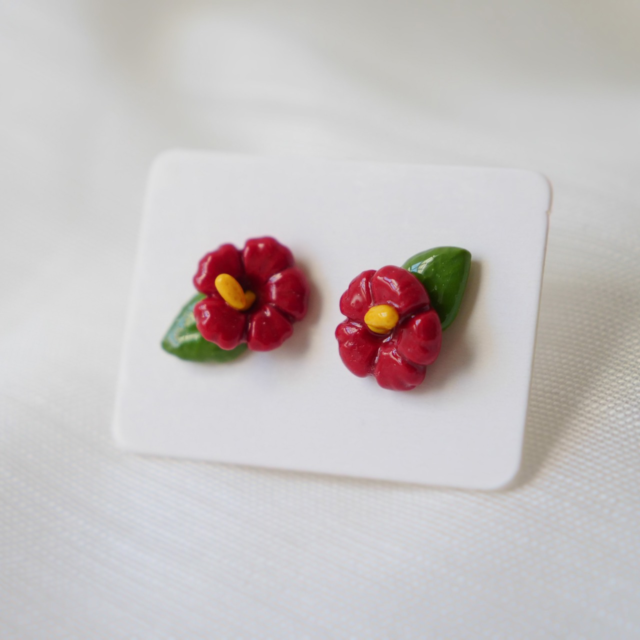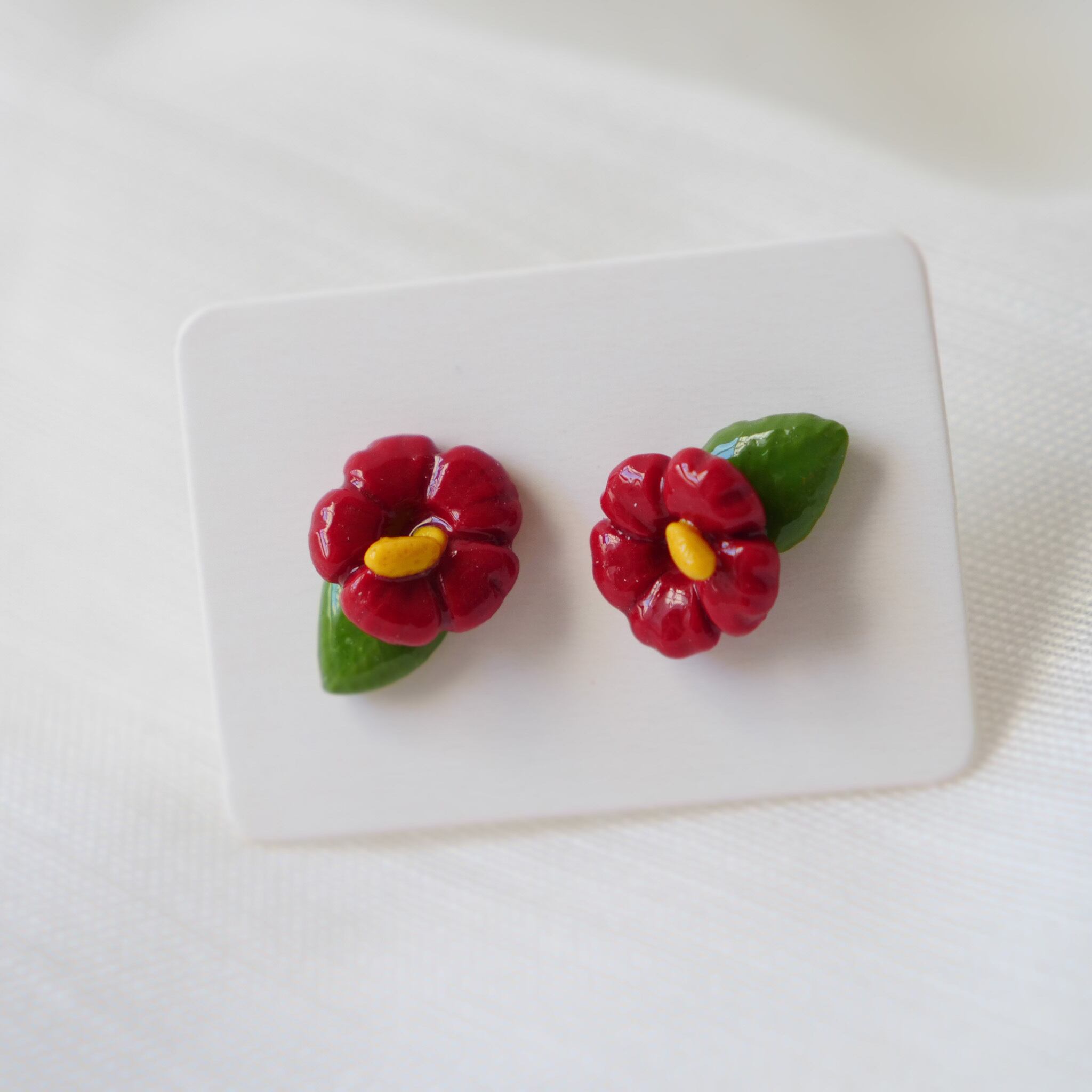 赤ハイビスカス ピアスは、南国の雰囲気を感じさせるデザインが特徴です。
