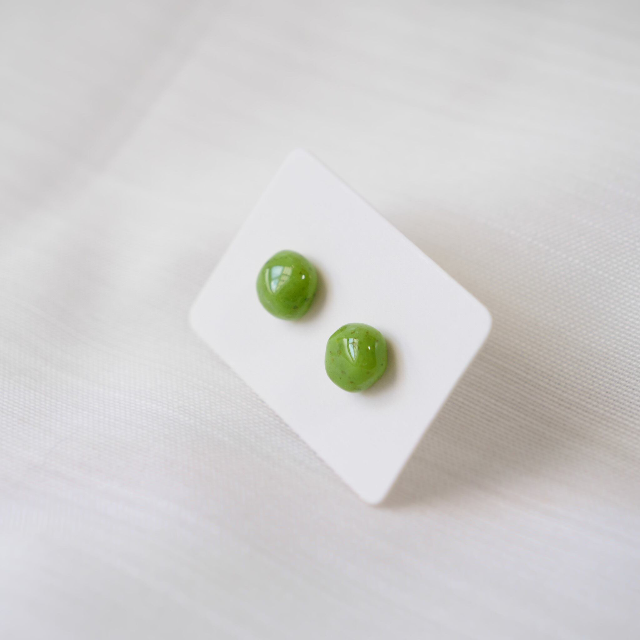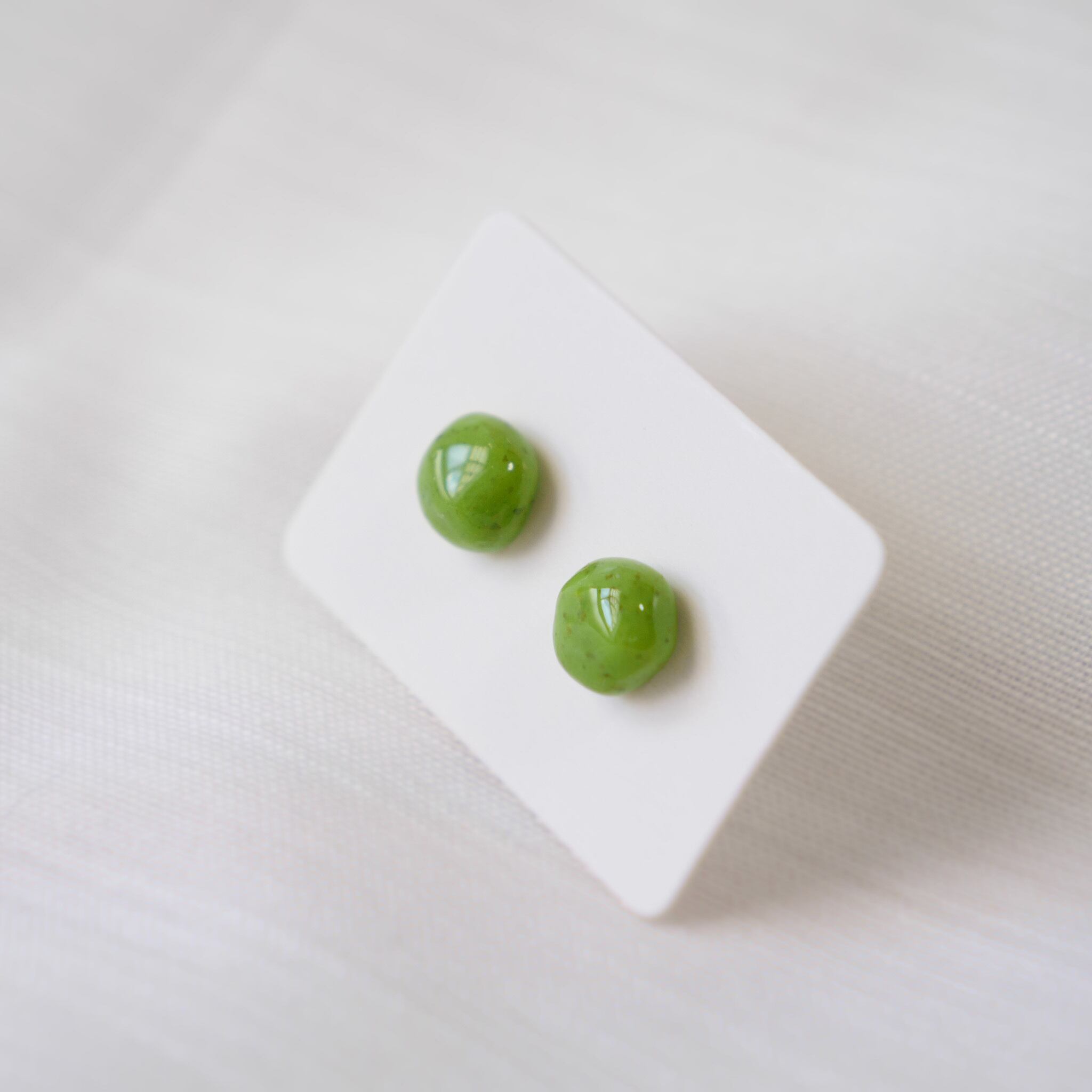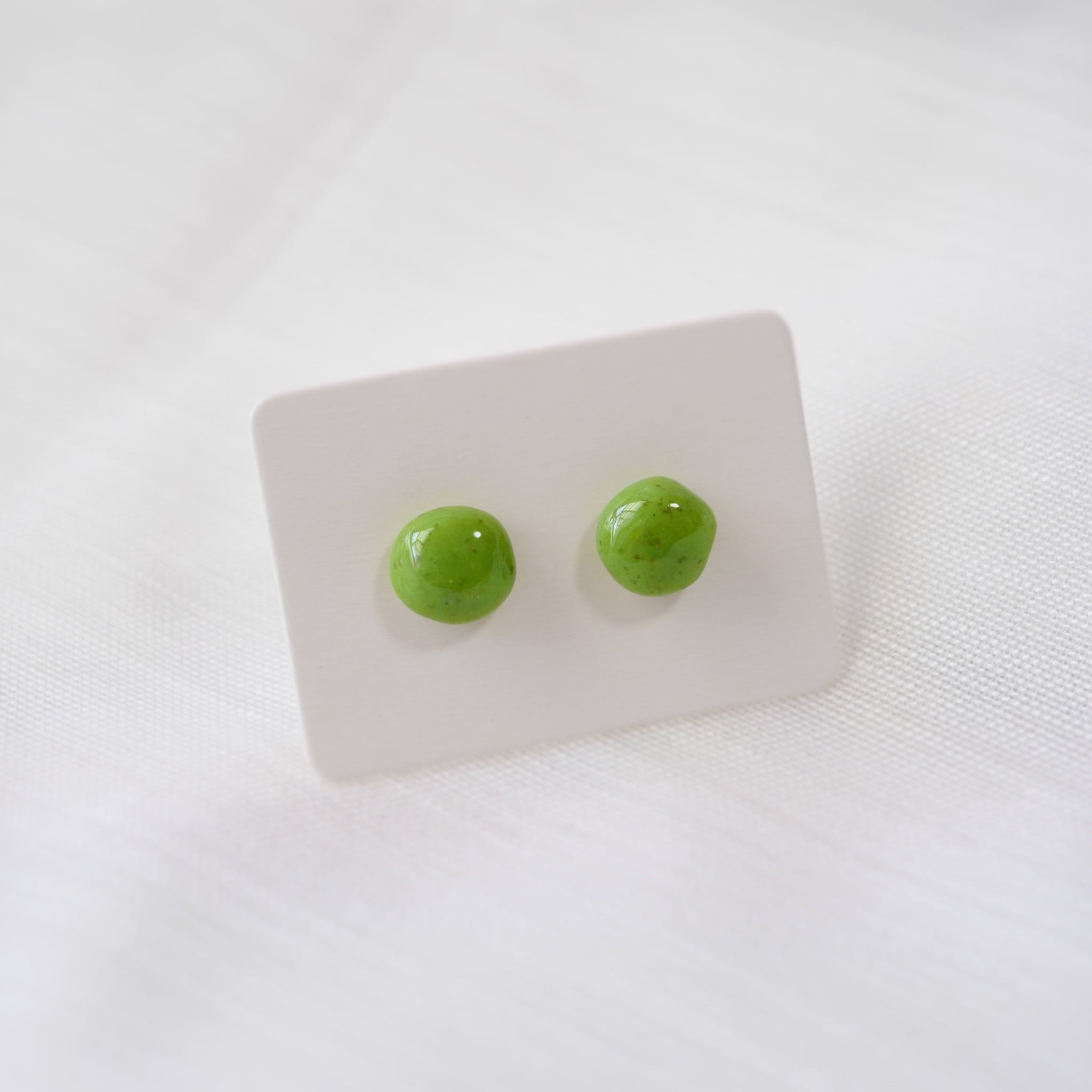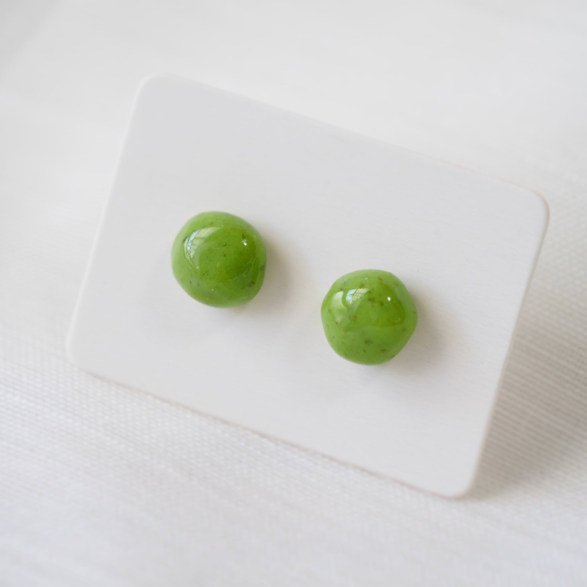 ストーン模様で黄緑の小さなシンプルな両耳ピアスです。