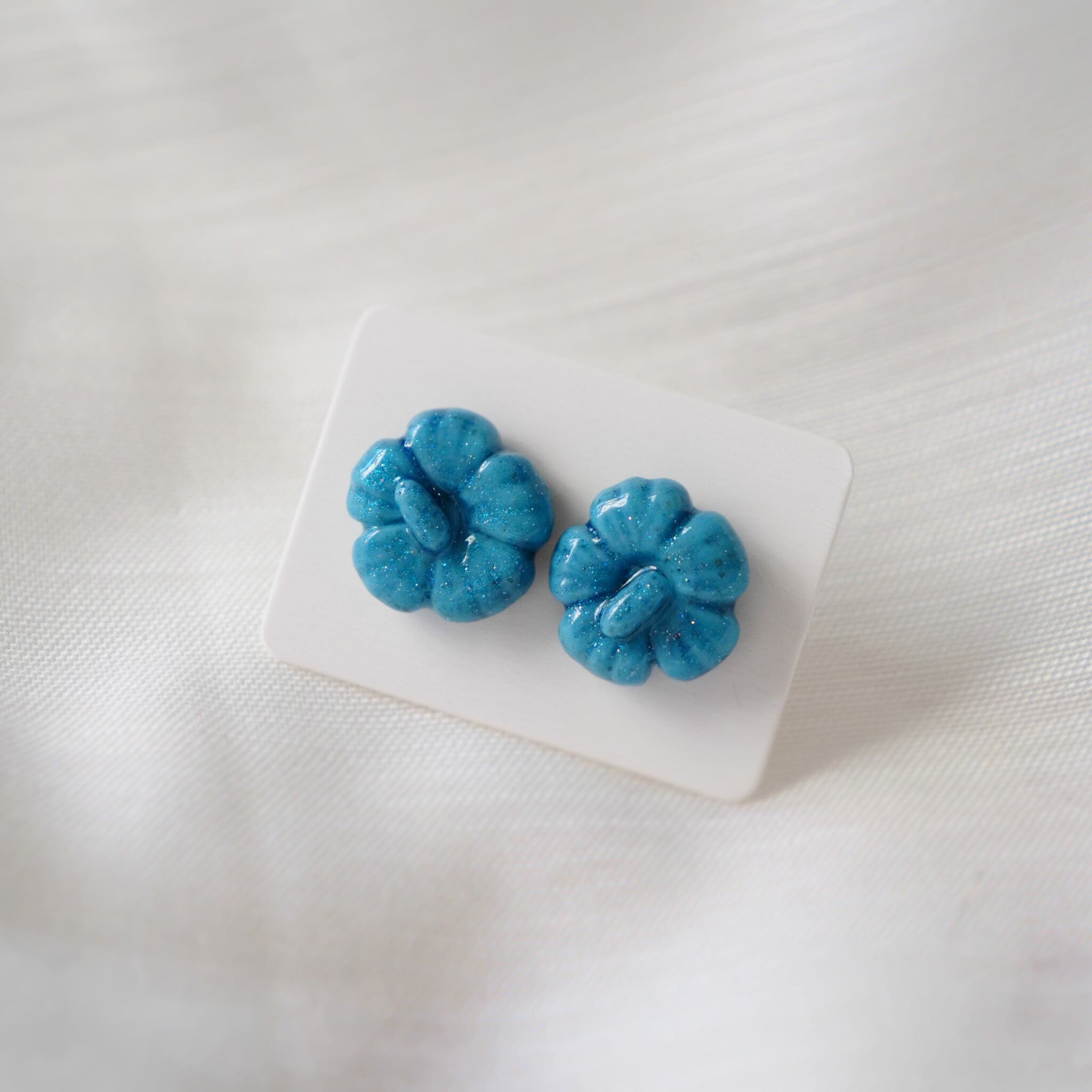 美しいターコイズカラーのハイビスカスの形をした両耳ピアスです。