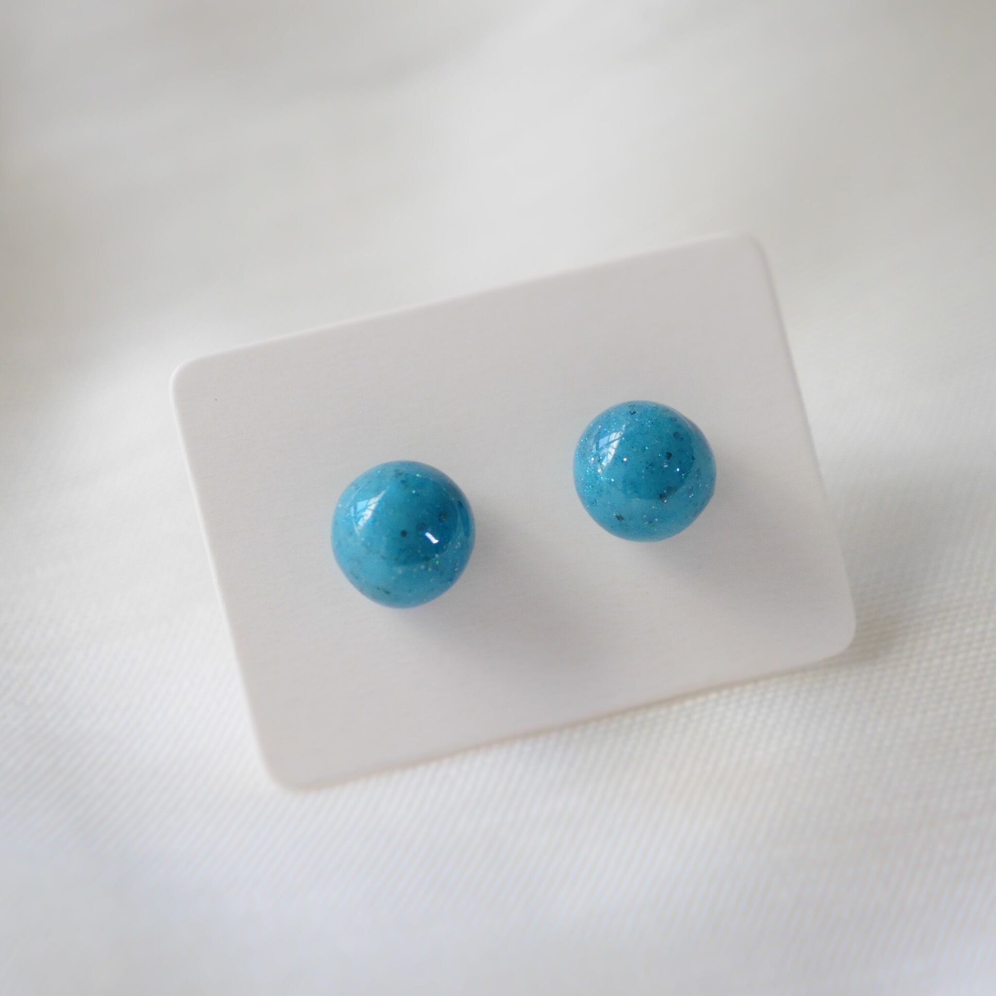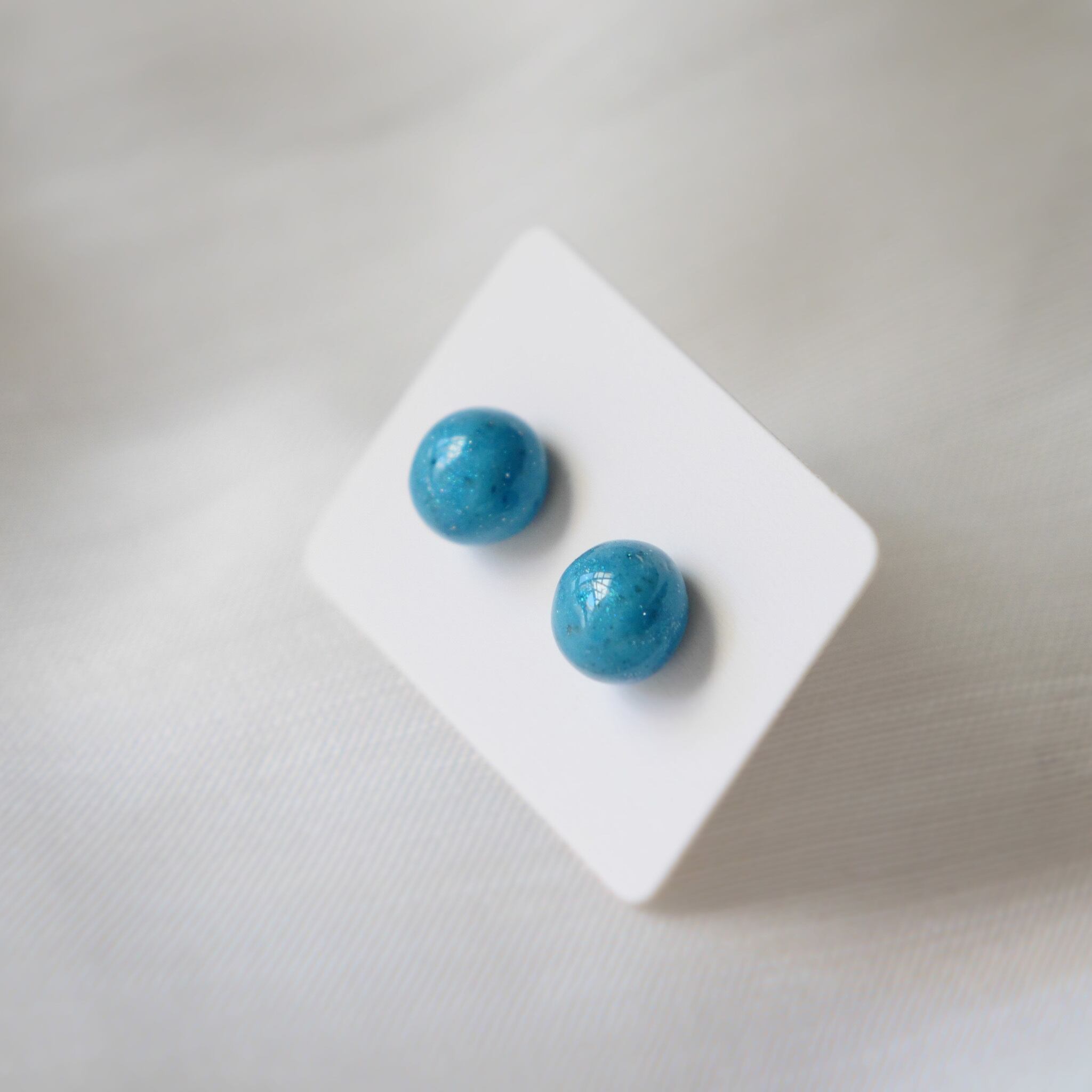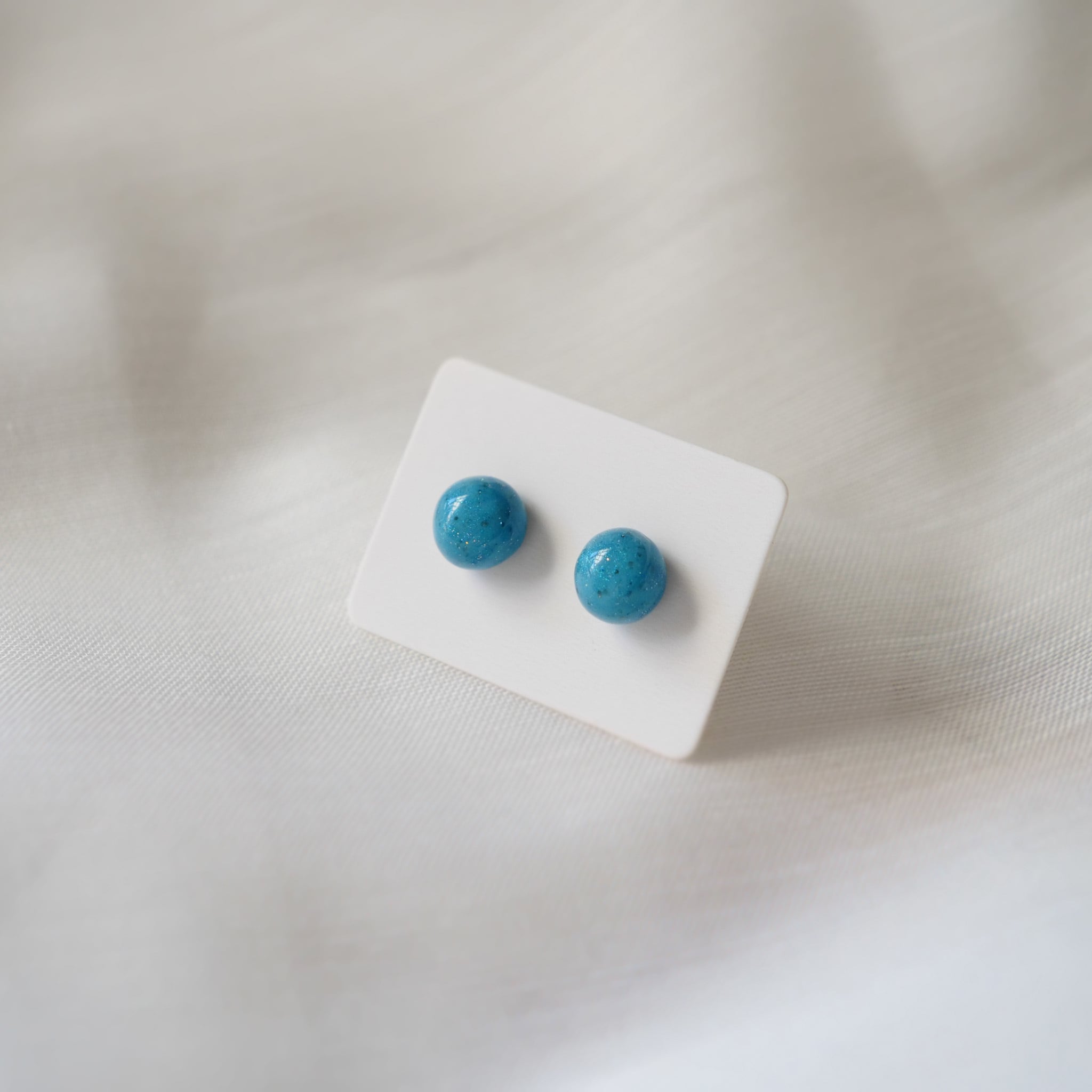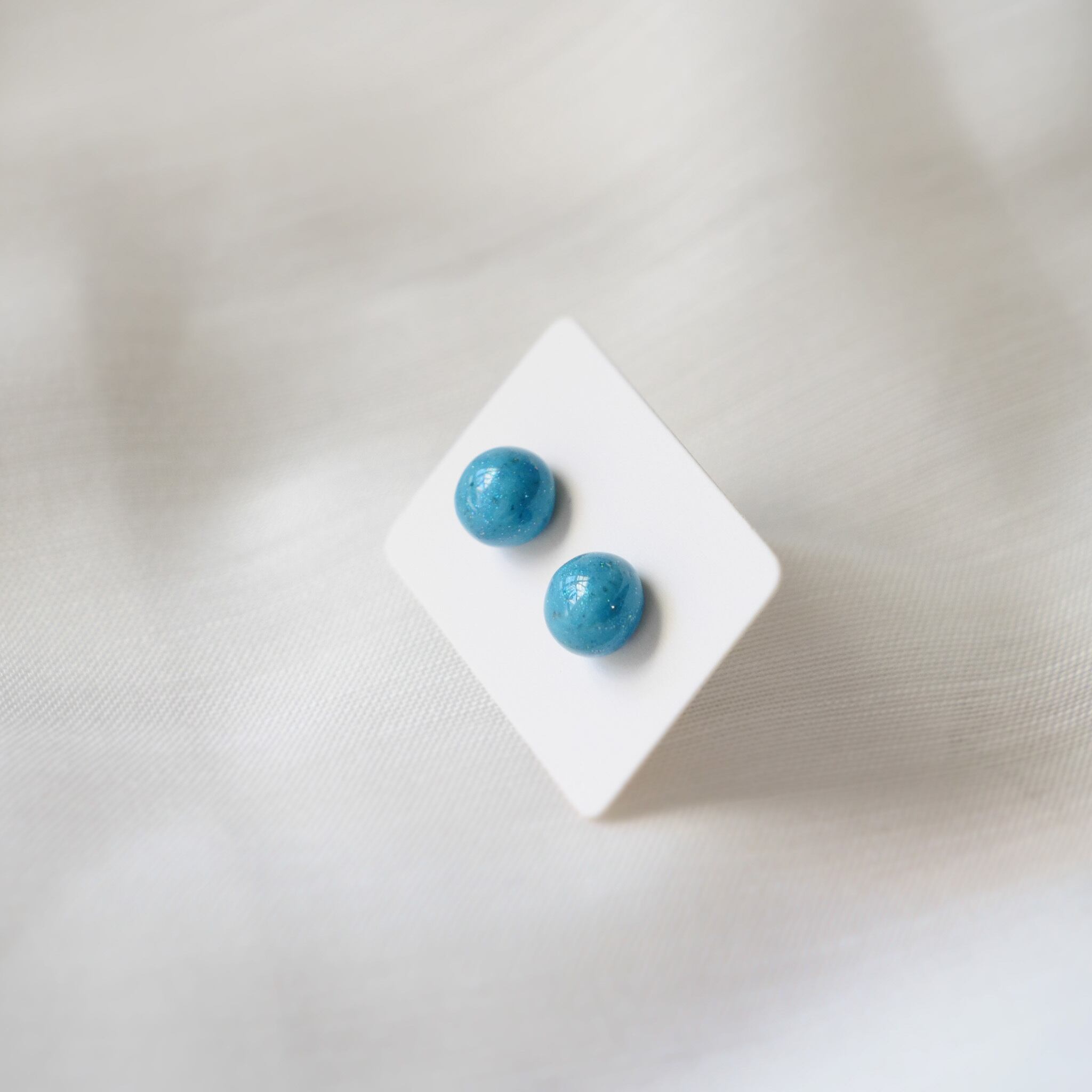 美しいターコイズカラーで、ラウンドシェイプをした両耳ピアスです。